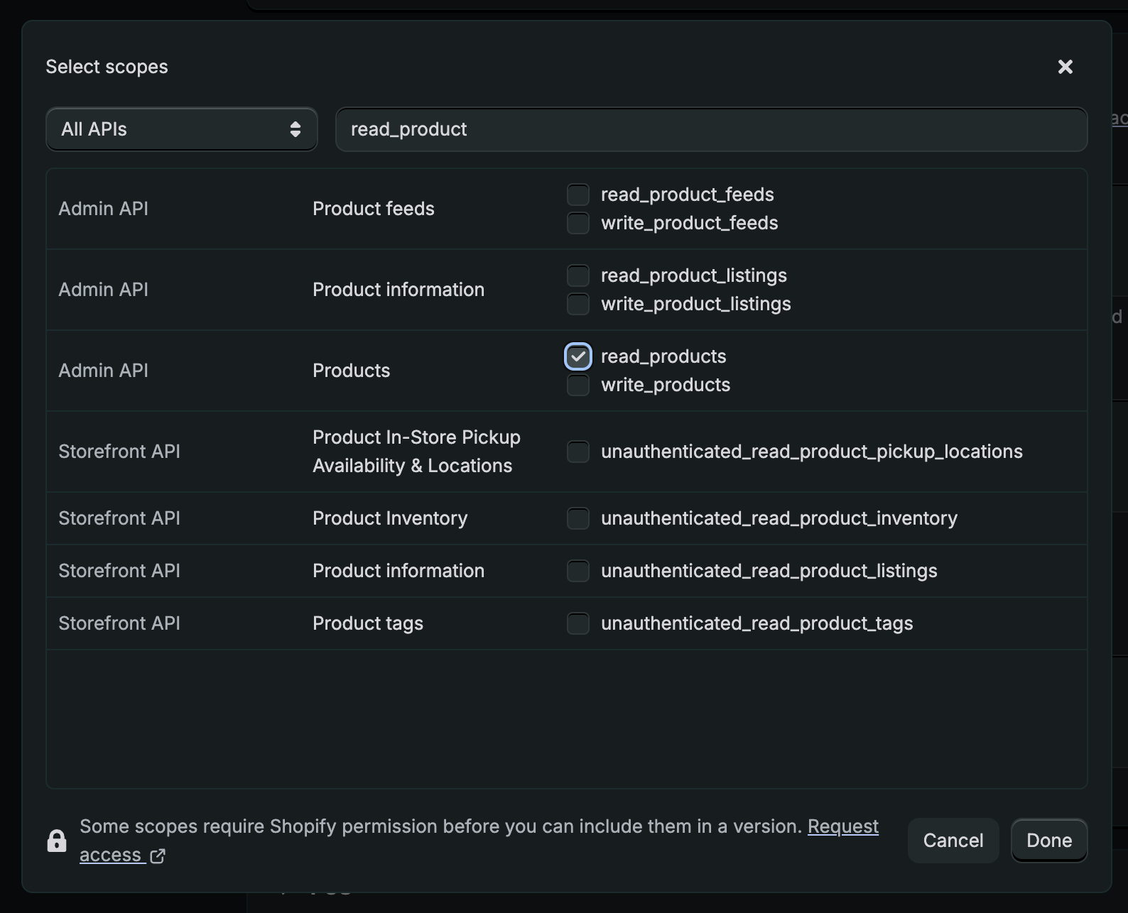 Depending on your use case, you may need to request permissions for access to certain scopes. Most use cases will require the “Read all orders” scope, which you can request on this page. If it’s relevant to your app, it isn’t too hard to get this access. You may also be interested in requesting subscription APIs and protected customer data.